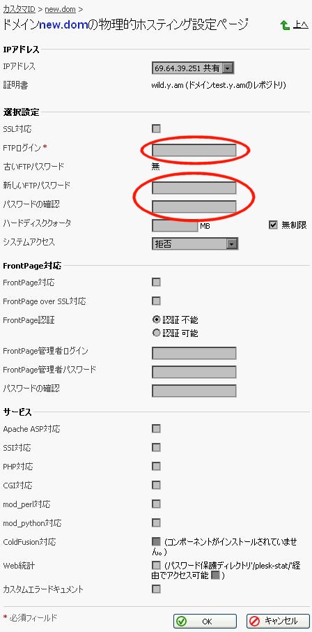 ホームディレクトリ  : /httpdocs