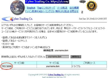 ユーザ名 『tr』から始まる7桁のサービスID