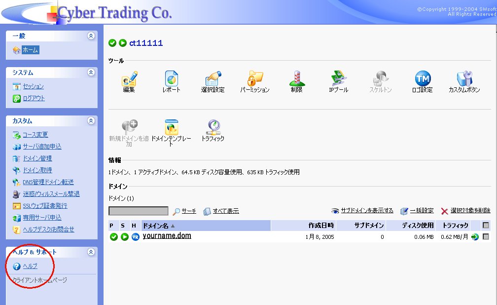 コントロールパネルの主な利用方法は、左にある『ヘルプ』を