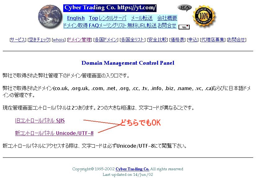新コントロールパネル Unicode/UTF-8でログインすると