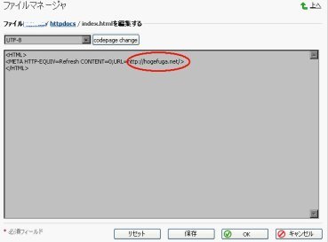 <META HTTP-EQUIV=Refresh CONTENT=0;URL=http://hogefuga.net/>