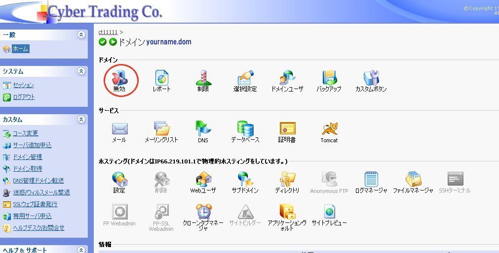 ドメイン欄の『無効』となっているアイコンをクリックします。