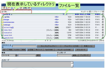 左上で現在表示するディレクトリを確認します。編集したいファイルの入ったディレクトリと違っている場合、一覧にあるディレクトリ名をクリックして移動してください。