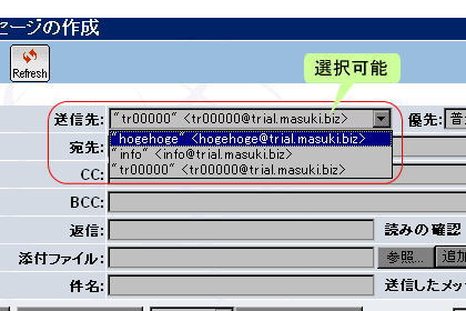 設定した送信者アドレスを使用するには、メッセージ作成の際に使用したい送信者アドレスを選択します。