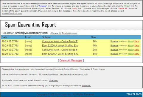 検疫管理をすることの能力を高めることは、IT管理者がスパム/迷惑メールを処理することにより費やされる多大な時間を節約することに大いに役立ちます。それはまた個々人がカスタマイズをし、検疫されたメールを自身でチェックし、正当であるべきメールが引っかかっていないか否かを確認することも可能にしています。