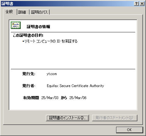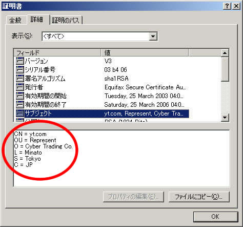 なお、この鍵のマークをダブルクリックすると、サーバー証明書の詳細情報を確認することができます。