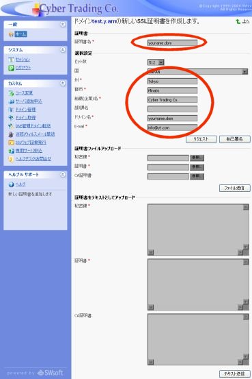 | ■『証明書』の箇所にドメイン名を入力します