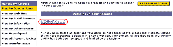- Domains In Your Account に表示されたお客様のドメイン名をクリックします。