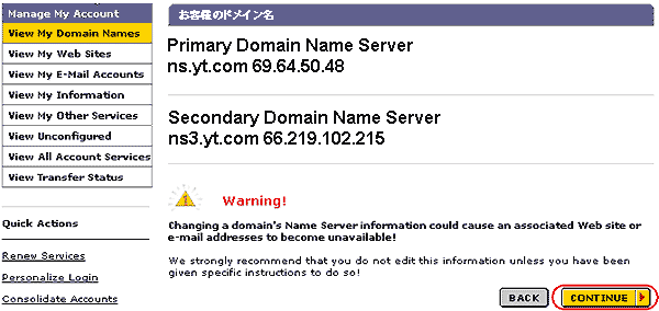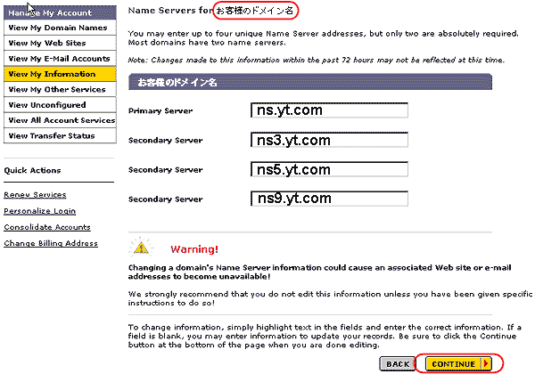 ネームサーバ変更の手続き:NSIをレジストラとする場合 |