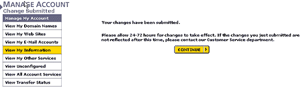- Your changes have been submitted.のメッセージを確認したらCONTINUEを押します。